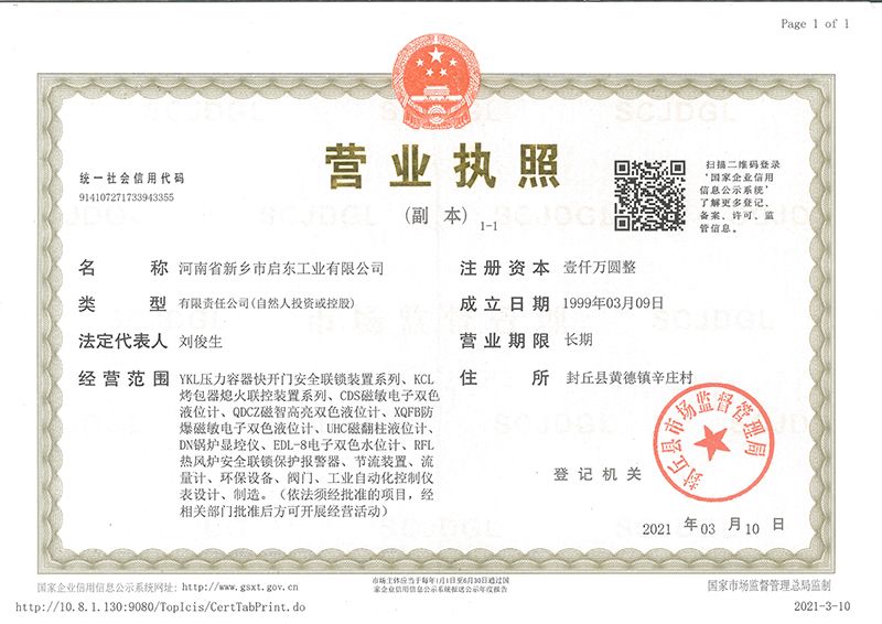河南省新鄉市啟東工業有限公司始建于1987年,是專注研發、生產自動化儀器儀表(主要與壓力容器、鍋爐等容器配套使用)的廠家。主要產品有液位計(磁敏雙色型、磁翻柱型等)系列、烤包器熄火聯控裝置系列、壓力容器快開門安全聯鎖保護裝置系列、鍋爐報警器系列。二十多年來,公司產品暢銷國內并遠銷俄羅斯、蒙古與東南亞,深得廣大用戶的信賴和好評。我們多年來致力于自動化儀器儀表的研制生產,公司現具有完善的生產、試驗、檢測手段和設備??萍紕撔?、誠信服務,是我們不變的經營理念,我們將以強有力的技術支持及售后竭誠為客戶提供良好的服務?! ?012年我公司成功研發了KCL系列烤包器熄火聯控裝置,并于2013年2月2日榮獲中華人民共和國國家知識產權局辦法的《實用新型**證書》<**號:2021202257735>該產品廣泛應用于唐鋼等大型鋼鐵企業,為烤包器安全作業提供了有力的保障?! ?002年我公司成功研發磁敏電子雙色液位計獨特的高亮度LED紅綠雙色顯示,獲得了專家的首肯和用戶的一致好評。在此基礎上我公司研發人員十年磨一劍,致力于XQFB-1防爆型磁敏雙色液位計的研發,于2013年12月27日由國家防爆電器產品質量監督檢驗中心檢驗合格并頒發防爆合格證書<編號:cnex19.0883>。該產品性能得到了充分的發揮,廣泛應用于含有Ⅱ類A·B級T1-T4組可燃氣體或蒸汽與空氣混合形成的爆炸性混合物的0區、1區危險場所。連接用戶DCS或PLC系統實現遠距離集中顯示和控制,從而實現節能、數字化管理。為用戶增加了一定的經濟效益和社會效益,。2014年公司成功申請了夢潤儀表的logo,新的品牌新的形象,夢潤儀表是啟東的LOGO, 歡迎新老用戶前來洽談合作?! ∥覀円蝗缂韧刈⒅乜蒲械耐度?,憑借產品的不斷更新、加大科技含量,進一步拓展市場。我們相信品質成就未來,以過硬質量、優惠價格、完善的售后服務熱忱歡迎廣大客戶來我司視察指導、洽談業務;精誠合作,共創輝煌!